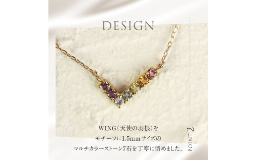 - K18 マルチカラー WING ネックレス アクセサリー レディース ジュエリー K18 イエローゴールド マルチカラー ストーン WING 天使の羽根 アミュレット 鑑別書付 保証書付 ジュエリーケース付