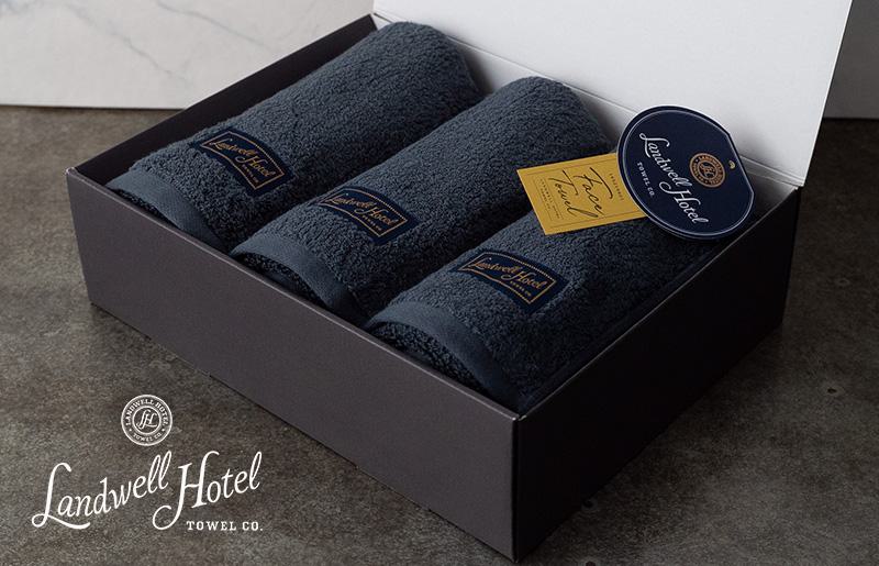 - 【お中元】Landwell Hotel フェイスタオル 3枚 ネイビー【ギフト 贈り物 TVで紹介】