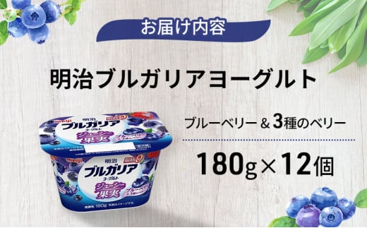 - ヨーグルト 明治ブルガリアヨーグルト脂肪0 ジューシー果実 ブルーベリー&3種のベリー(180g×12個) 乳製品 乳酸菌 脂肪0 果汁 果肉 ブルーベリー ベリー 食べ切り 茅ヶ崎市 神奈川県