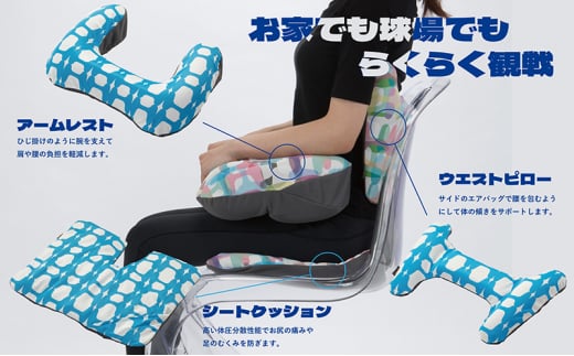 中日ドラゴンズコラボ 野球観戦用エアークッション3点セット (腕・腰・お尻/色:ブルー) [№5787-0888]