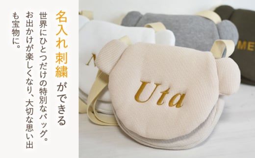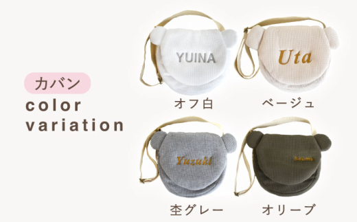 - 【ベージュ×シルバー】ワッフル素材 くまミミ キッズ ショルダーバッグ【coco plus an factory】[OCR066]