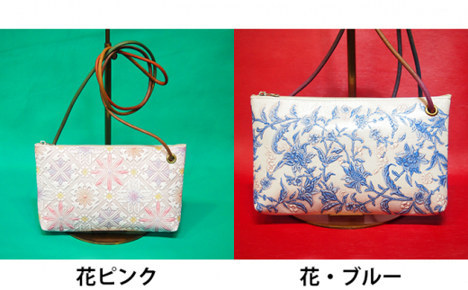 - [№5258-7099]0128姫路革細工 ポシェット「花・赤」