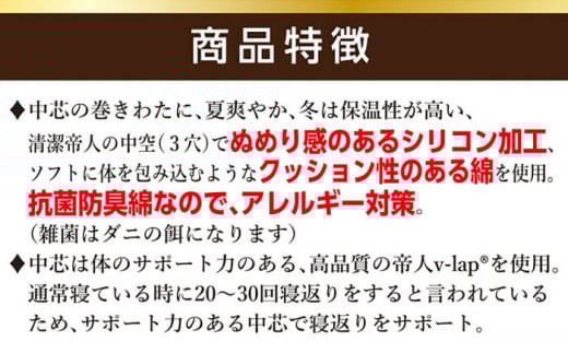 フィルケア・V-Lap使用・3層式敷き布団【シングルサイズ】(KIK0036)《壱岐市》【くじめ屋】 [JFU008]