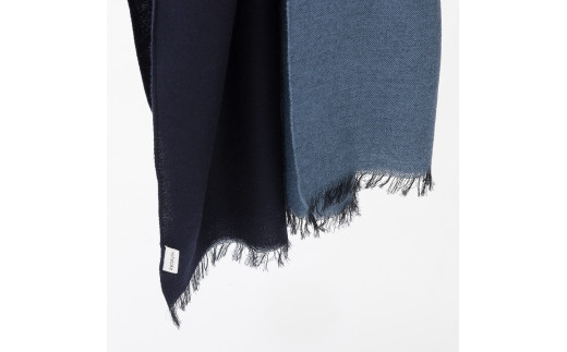 播州織バイカラーコットンカシミヤストール【ハーフサイズ】(57-5) ネイビー×ブルー