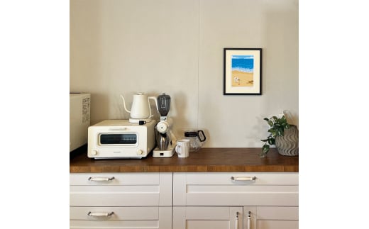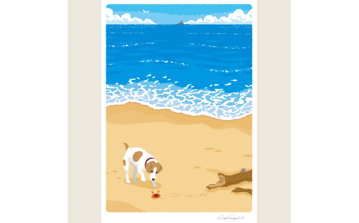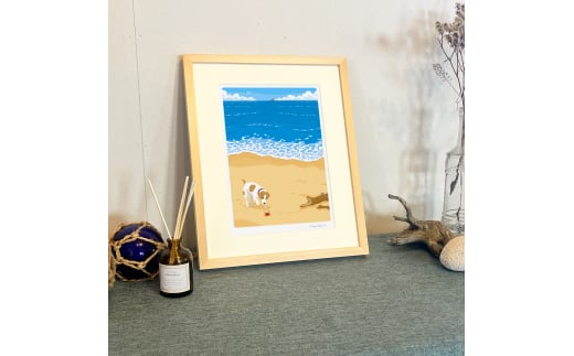 - 湘南・茅ヶ崎で描く、海を感じるイラストアート 『 湘南ランドスケープ04:渚の遭遇 』 ジークレーアートフレーム (小/セピアカラー)/ 絵画 風景 版画