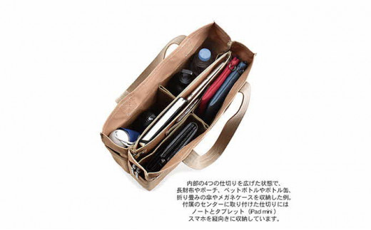 取り外し可能な仕切り付き スクエアポケポケトート/A4 マスタード