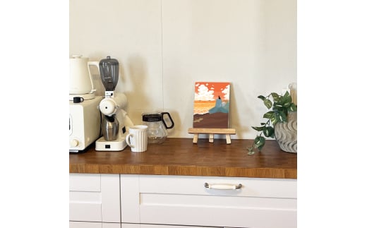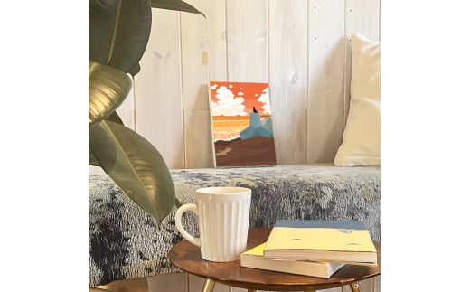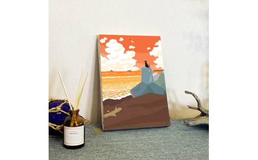 湘南・茅ヶ崎で描く、海を感じるイラストアート 『 湘南ランドスケープ09:夕暮れのサザンビーチ 』 キャンバスアートパネル(小)/絵画 風景 犬 猫