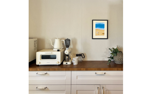 - 湘南・茅ヶ崎で描く、海を感じるイラストアート 『 湘南ランドスケープ04:渚の遭遇 』 ジークレーアートフレーム (小/木地仕上げ) /絵画 風景 版画