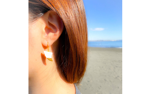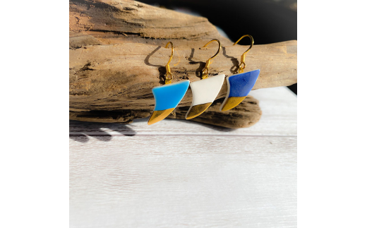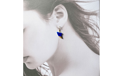 茅ヶ崎市 湘南 陶磁器 ピアス 上品 かわいい レディース ギフト プレゼント 誕生日 母の日 お祝い サマーギフト ゴールド 金 アート アクセサリー Artopus.SHONAN ピアス フィン ディープブルー