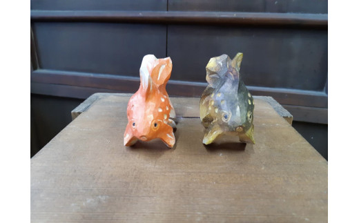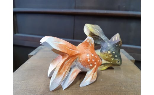木彫フォークアート【金余(赤・ゴールド)ペア】