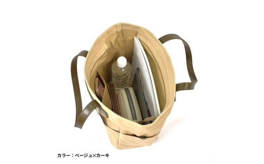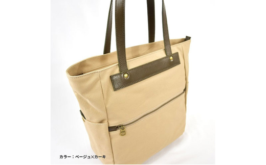 - レディース 国産 キャンバストートバッグ 7M2-1143(ベージュ×カーキ)