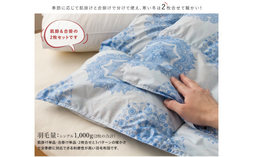 2枚合わせ 羽毛掛け布団 シングル カレイド(グレー)_Qc060-gy