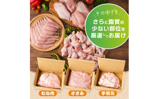 山梨県産<健味鶏>むね肉、ささみ、手羽元 合計4kgセット