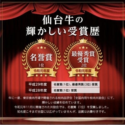 - <A5仙台牛>総重量1.04kg サーロインステーキ270g×2・霜降り肩ロース500g×1 セット【1401383】