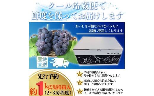 - 【先行予約】大粒!種なしピオーネ 2~3房(約1kg規格箱入り)/ ぶどう 先行予約 産地直送 フルーツ 果物 くだもの 甘い 旬 新鮮 ジューシー 種無しぶどう 種なしぶどう 山梨 やまなし 【n0579_apx】