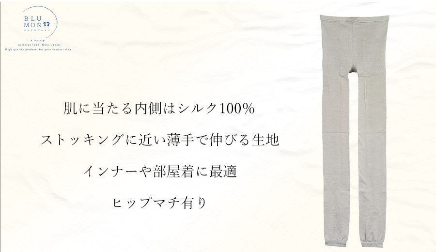 BLUMONシルクスパッツ(10分丈)/// 薄手 レギンス ルームウェア 部屋着 スパッツ シルク 10分丈 フリー インナー 日本製 奈良県 広陵町