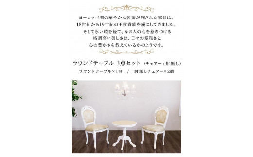 - コモ ラウンドテーブル フランシスカ肘無しチェア2脚 3点セット ホワイト AKU1006943