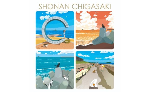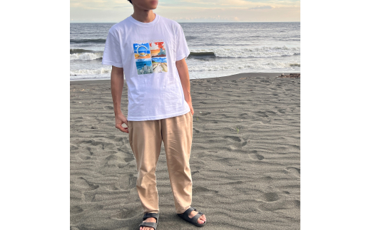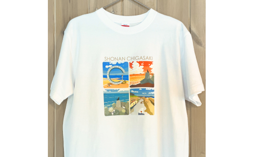 湘南・茅ヶ崎で描く、海を感じるイラストアート 『湘南ランドスケープ:Tシャツ( Lサイズ)』 /風景 犬 猫 景色 デザイン ビーチ 海辺 サザンC
