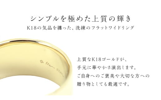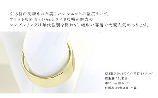- K18製 10mm フラットワイド リング ( 平打ち ) フォーマル 冠婚葬祭 結婚式 ゴールド リング 指輪 アクセサリー シンプル 18金 金 ギフト 記念 贈り物 贈答用 アクセサリー ジュエリー ジュエリーマーノ 桜川市 [AH150sa]