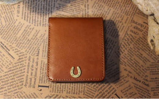 蹄鉄付き ハーフウォレット 二つ折り 財布 レザー 革 本革 馬 競馬 オリジナル 手作り ギフト プレゼント 栗東市 滋賀 ブラック