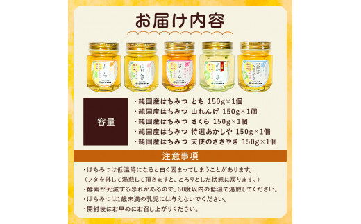 - 選りすぐりの純国産はちみつ150g×5本セット ns008-007