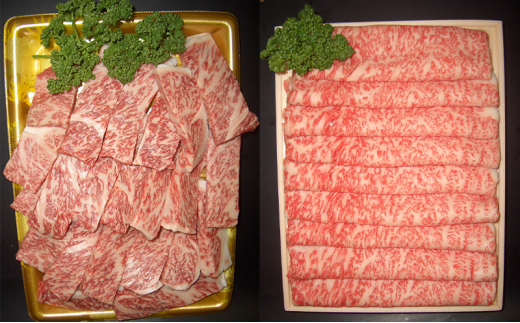 - [№5615-0005]黒毛 和牛 備中牛 ロース焼肉1kg、うす切り1.35kg 岡山県産