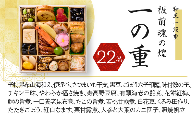 おせち「板前魂の煌」2個セット 和風 一段重 6.5寸 22品 2人前 先行予約【おせち おせち料理 板前魂おせち おせち2026 おせち料理2026 冷凍おせち 贅沢おせち 先行予約おせち 年内発送】