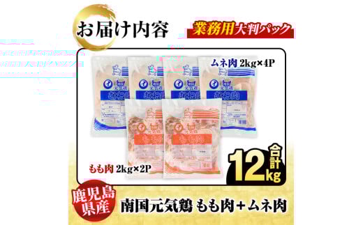 - 鹿児島県産!南国元気鶏 業務用もも肉+ムネ肉セット(合計12kg) 国産 鹿児島県産 鶏肉 肉 お肉 ムネ肉 むね肉 胸肉 モモ肉 もも肉 南国元気鶏 業務用 大判パック おかず おつまみ Qセット【さるがく水産】akn028-25