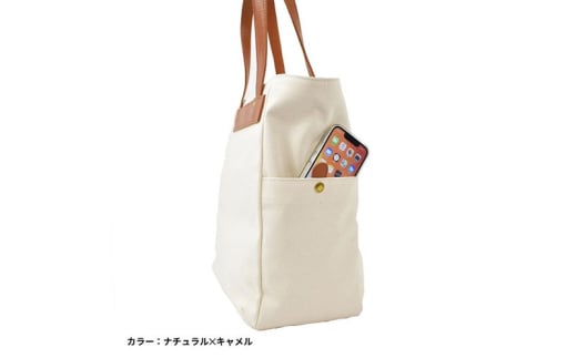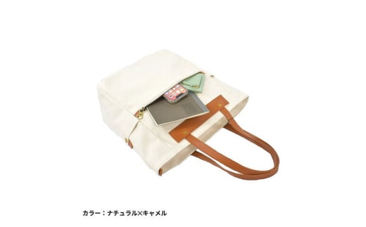 レディース 国産 キャンバストートバッグ 7M2-1143(ナチュラル×キャメル)