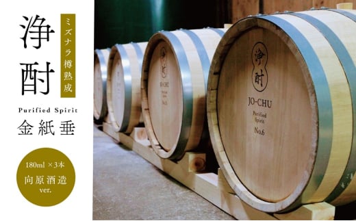 - [№5895-0759]日本酒 浄酎 -Purified Spirit 金紙垂 ミズナラ樽熟成 180ml 小瓶3本セット /向原酒造ver. 酒 お酒 広島県