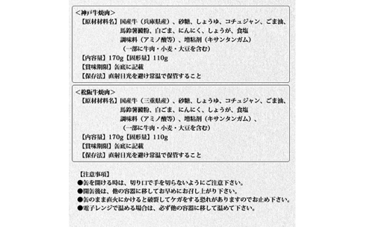- 《2缶》焼肉缶詰 松阪牛&神戸牛セット 長期保存で備蓄に便利【1590053】