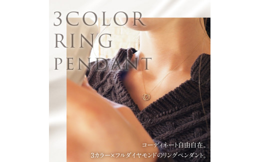 - K18YG&WG&PG 3カラーダイヤモンドリングペンダント ペンダント ネックレス リングペンダント アクセサリー レディース ジュエリー K18 イエローゴールド ホワイトゴールド ピングゴールド ダイヤモンド 鑑別書付 保証書付 ジュエリーケース付