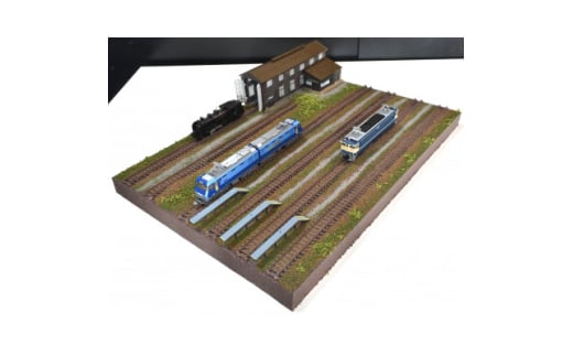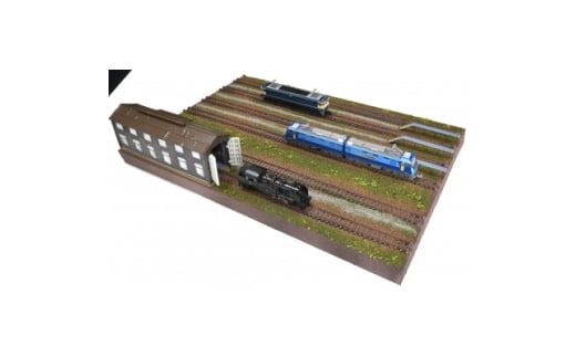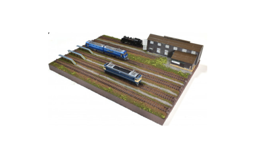- Nゲージ用 鉄道模型ジオラマ展示台 37×26cm 木造機関庫付き6線ヤード(洗浄台付き)【1590658】