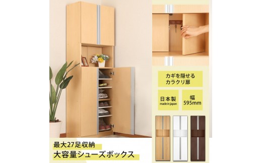 - [完成品でお届け]からくりシューズボック 幅60cm(選べる3色)シューズボックス スリム 最大 27足 収納 大容量 ハイタイプ 扉付き シューズラック 靴箱 木製 靴入れ 収納棚 玄関収納 薄型 扉 下駄箱 靴 ブーツ 転倒防止 国産 玄関 おしゃれ SKANBX100600