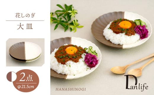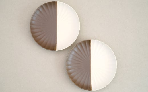 - 【波佐見焼】花しのぎ 大皿 ペア ハーフカラー(栗/白)【団陶器】 [PB193]