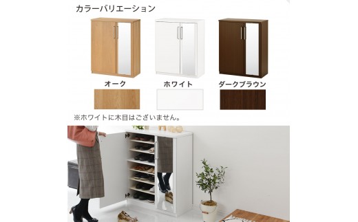 【完成品+設置付き】ミラー付きシューズラック ロータイプ 幅75cm(ホワイト)シューズボックス ミラー付き ロータイプ 日本製 国産 シューズラック 大容量 ミラー 姿見 鏡 靴 収納 靴箱 シューズ ブーツ 玄関収納 木製 北欧 おしゃれ SKONBM175030-0-WH