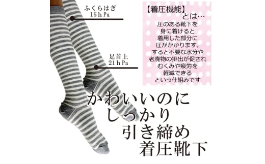 【フラワーレッグスシリーズ】着圧ソックス ボーダー柄 FW-HS02 L グレー