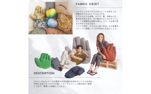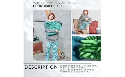ユニークな手の形をしたデザインクッション ファブリックオブジェ「Hand」 グリーン×ペールアクアグリーン / PORTLAITLAB クッション インテリア デザイン ハンド 手 国内生産 国産生地【n0625-01_por】