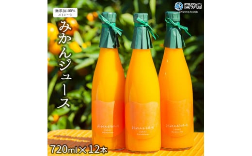 <みかんジュース 720ml×12本> 果汁100% ストレート じゅーす おいしい 果物 フルーツ ミカン オレンジ おれんじはーと 飲んで応援 特産品 西宇和 愛媛県 西予市【常温】『2025年12月上旬より順次発送』