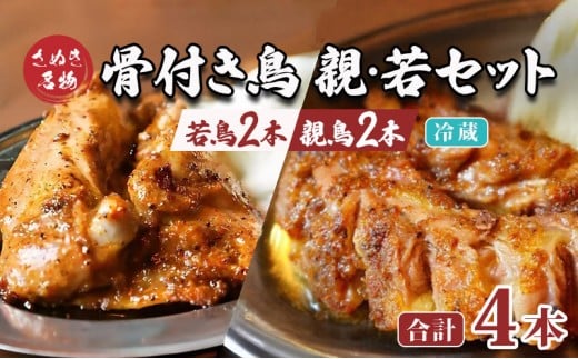 骨付き鳥 若2本 親2本 計4本セット 骨付き鶏 鶏肉 鶏 チキン レッグ ローストチキン 国産 惣菜 焼鳥 焼き鳥 骨付鳥 とりにく 惣菜 おかず おつまみ 酒の肴 ビール ハイボール ワイン 焼酎 チューハイ ウイスキー 酒 アルコール 日本酒 香川県 丸亀市