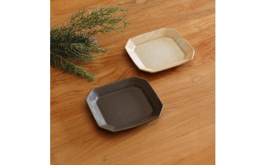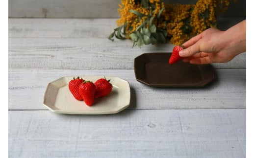 信楽焼 八角ケーキ皿 鉄散&サビ釉セット【古谷製陶所】