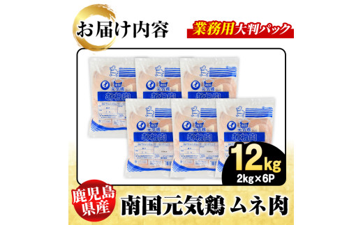 鹿児島県産!南国元気鶏 業務用ムネ肉(計12kg) 国産 鹿児島産 鶏肉 胸肉 むね肉 業務用 大判パック セット 業務用 唐揚げ 蒸し鶏 冷凍配送 Pセット【さるがく水産】akn028-22