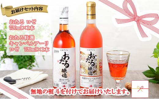 - 無地熨斗 北海道 おたるロゼワイン キャンベルアーリ 2本 飲み比べ おたる醸造 甘口 仁木町 720ml のし 贈答 プレゼント gift お中元 お歳暮 酒 家飲み 記念日 誕生日 生葡萄酒 ご当地ワイン