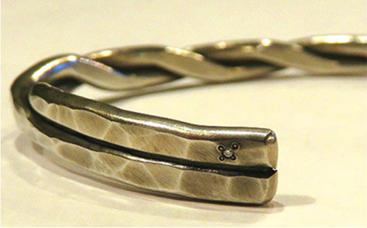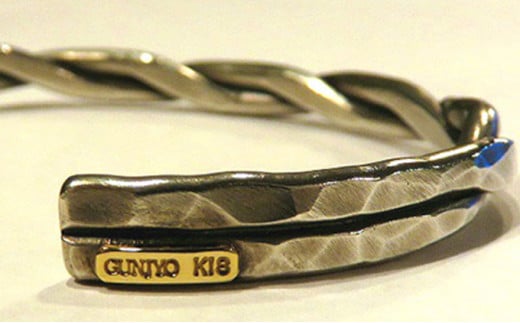 - ツイストシルバー950バングルブレスレットK18プレート&ダイヤモンド付きメンズサイズ[№5787-0533]