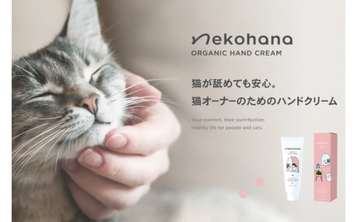 猫オーナー必見♪ネコハナ オーガニック ハンドクリーム【猫 ねこ ネコ 赤ちゃん シアバター 保湿 うるおい ダマスクバラ花水 北茨城市 茨城県】(CQ001)