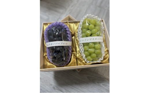 お中元桐箱入りナガノパープル1房・シャインマスカット1房 県内共通返礼品:かすみがうら市産 (BR171)