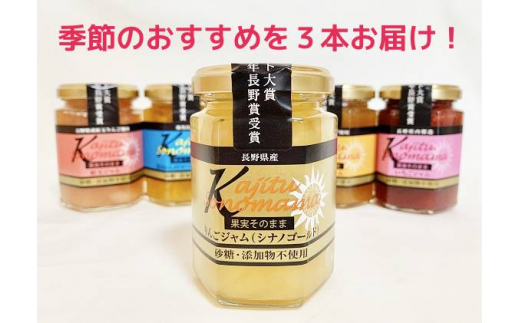 - 頒布会3回お届け 日本ギフト大賞2018長野賞 JAM382特製 果実そのままジャム150g 3本セット【希少糖入り】