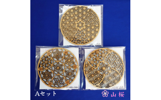 <セット>軽米町産桜の木コースター3枚セット(Aセット)【1586237】