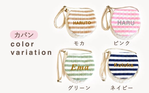 - 【グリーン×ブロンズ】【名入れ可能!】キルティング素材 ボーダー キッズ ショルダーバッグ【coco plus an factory】[OCR068]