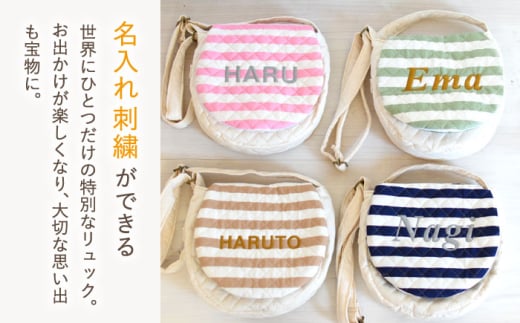 【グリーン×ブロンズ】【名入れ可能!】キルティング素材 ボーダー キッズ ショルダーバッグ【coco plus an factory】[OCR068]